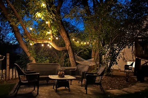 Enjoy the shared backyard “urban forest” — a leafy, peaceful space with seating areas and a hammock under mature trees (seasonal). Many guests mention how calming the yard feels after a busy day.